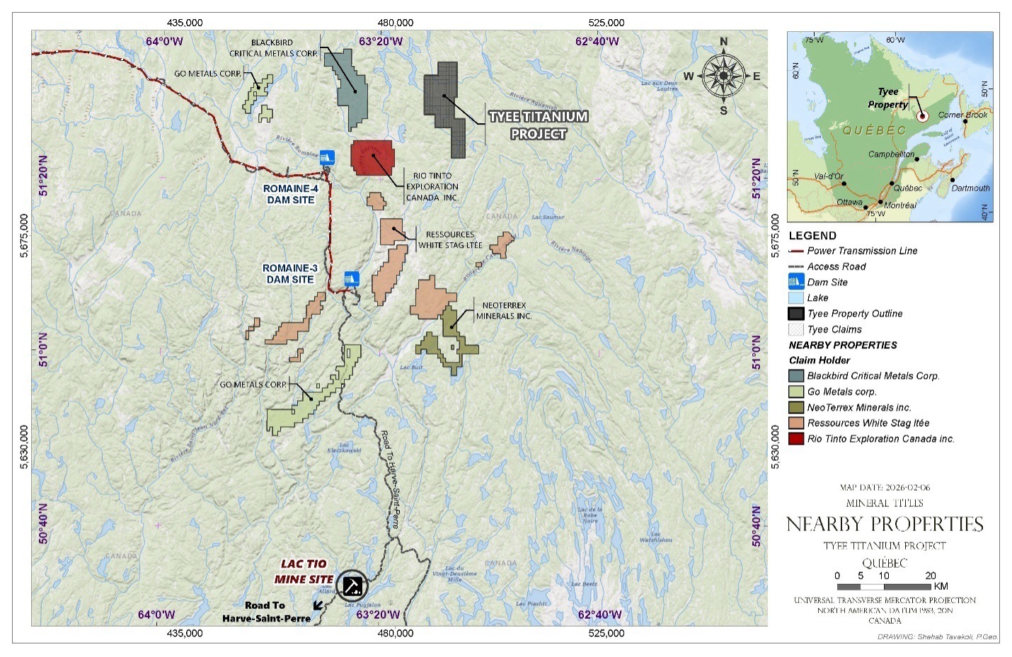 Eureka holds approximately 158 claims in the emerging Raglan West, Raglan South and New Leaf Lithium Camps in Quebec, Canada. The Company also holds a 100% interest in the Tyee Titanium-Vanadium Project located in Quebec, and an option to acquire a 100% interest (subject to a 2% NSR) in the Cabin Lake Polymetallic Project located in British Columbia.